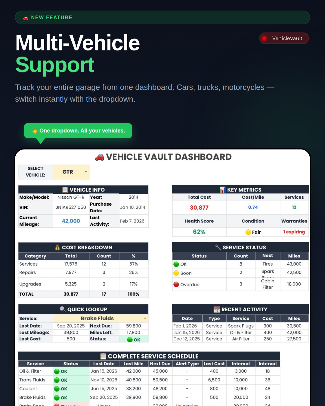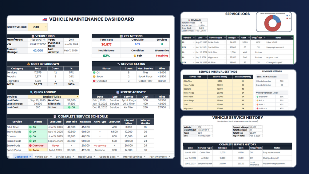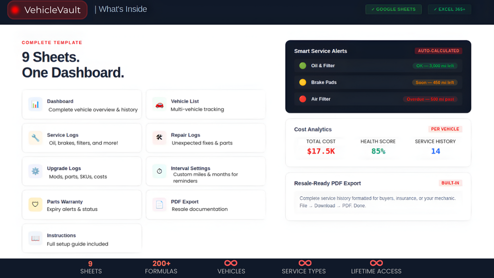 Vehicle Vault | Car & Motorcycle Maintenance Tracker - Google Sheets Template
