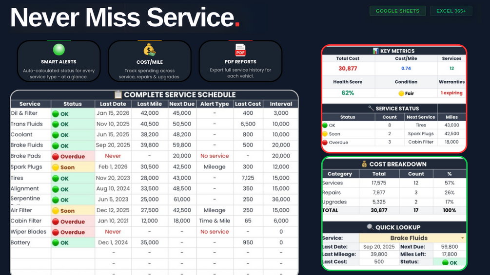 This fully automated Google Sheets template is designed for car & bike owners who want a clean, powerful, and reliable way to track everything their vehicle needs.